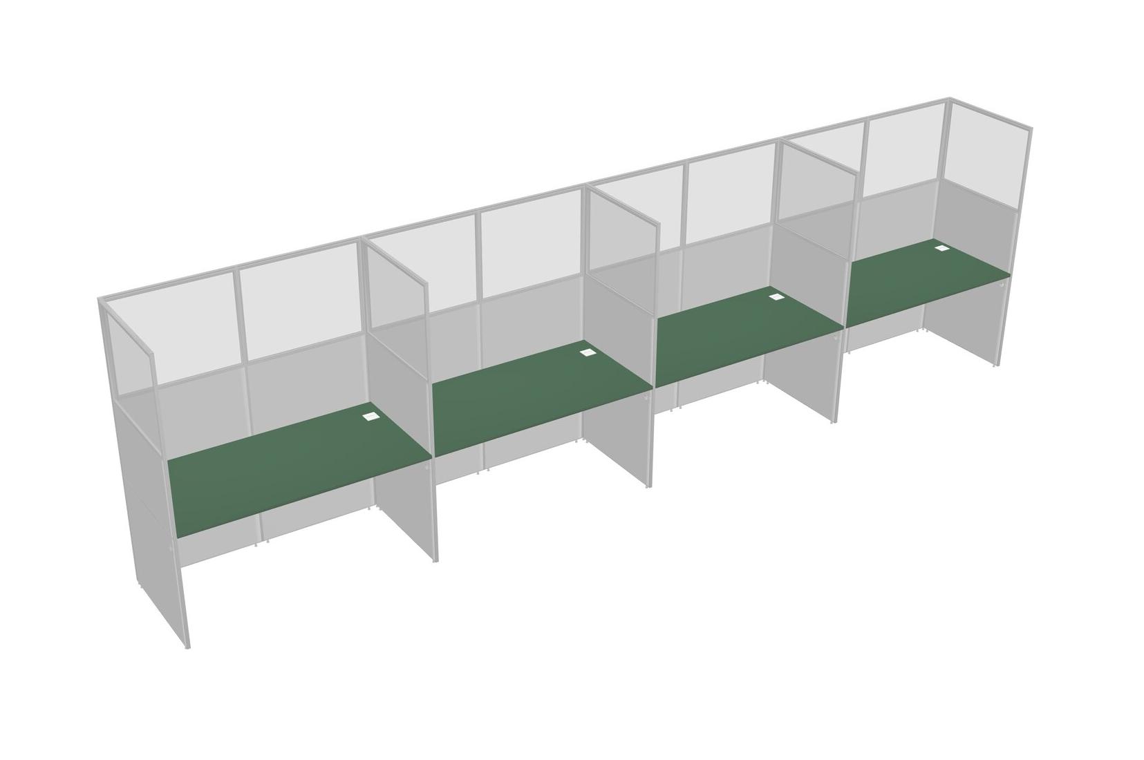 Green Shared Rectangular Office Cubicle Panel System For 4 Persons