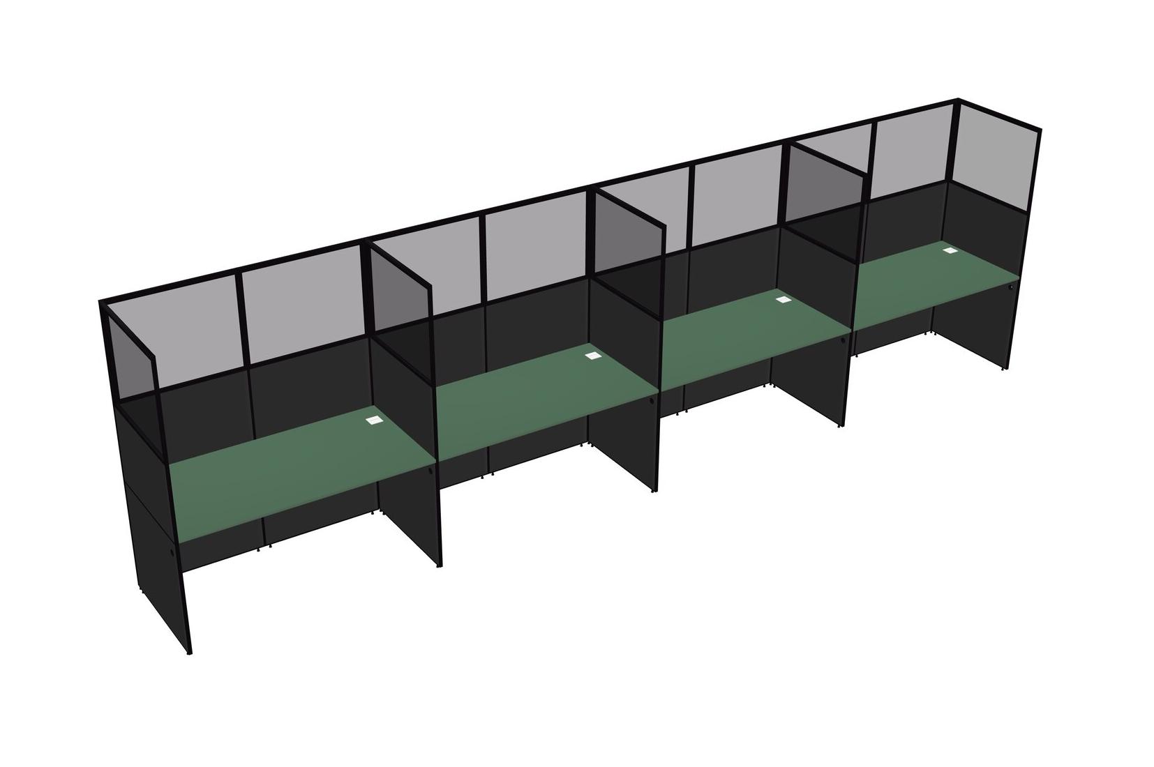 Green Shared Rectangular Office Cubicle Panel System For 4 Persons