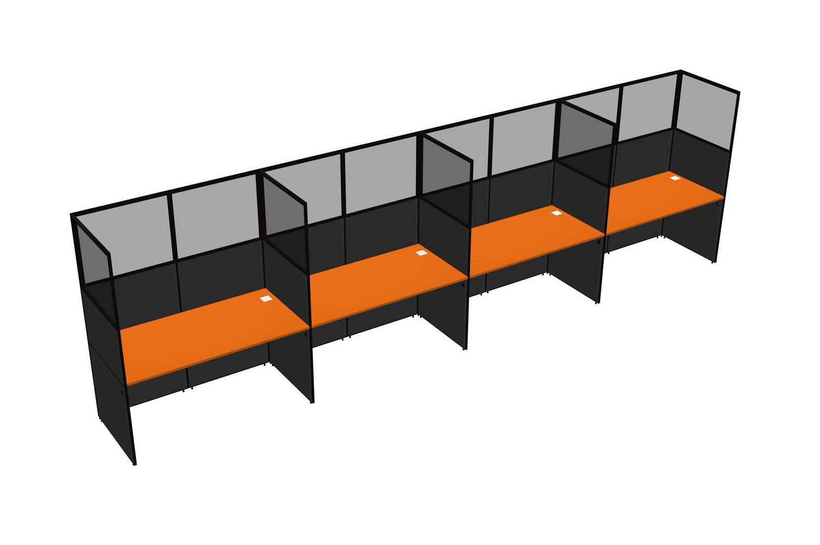 Orange Shared Rectangular Office Cubicle Panel System For 4 Persons