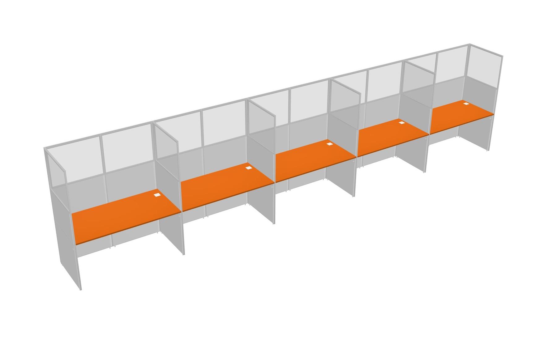 Orange Shared Rectangular Office Cubicle Panel System For 5 Persons