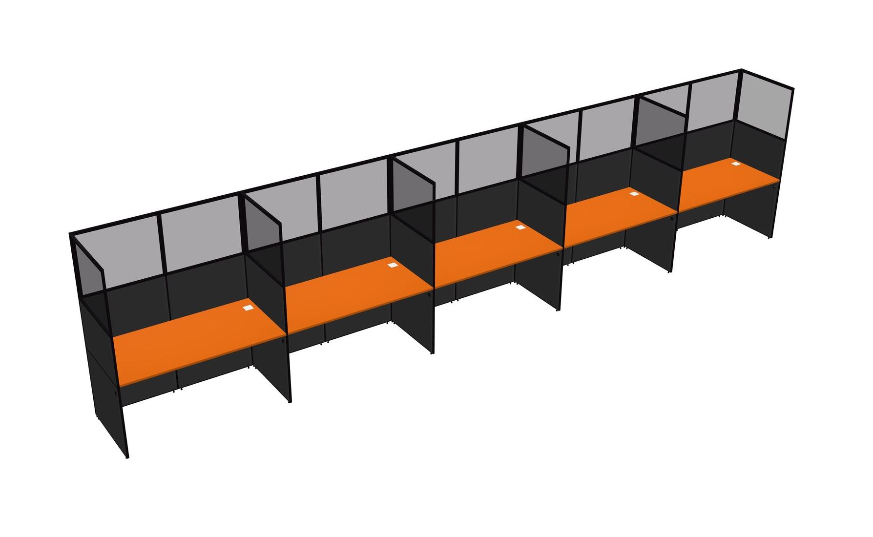 Orange Shared Rectangular Office Cubicle Panel System For 5 Persons
