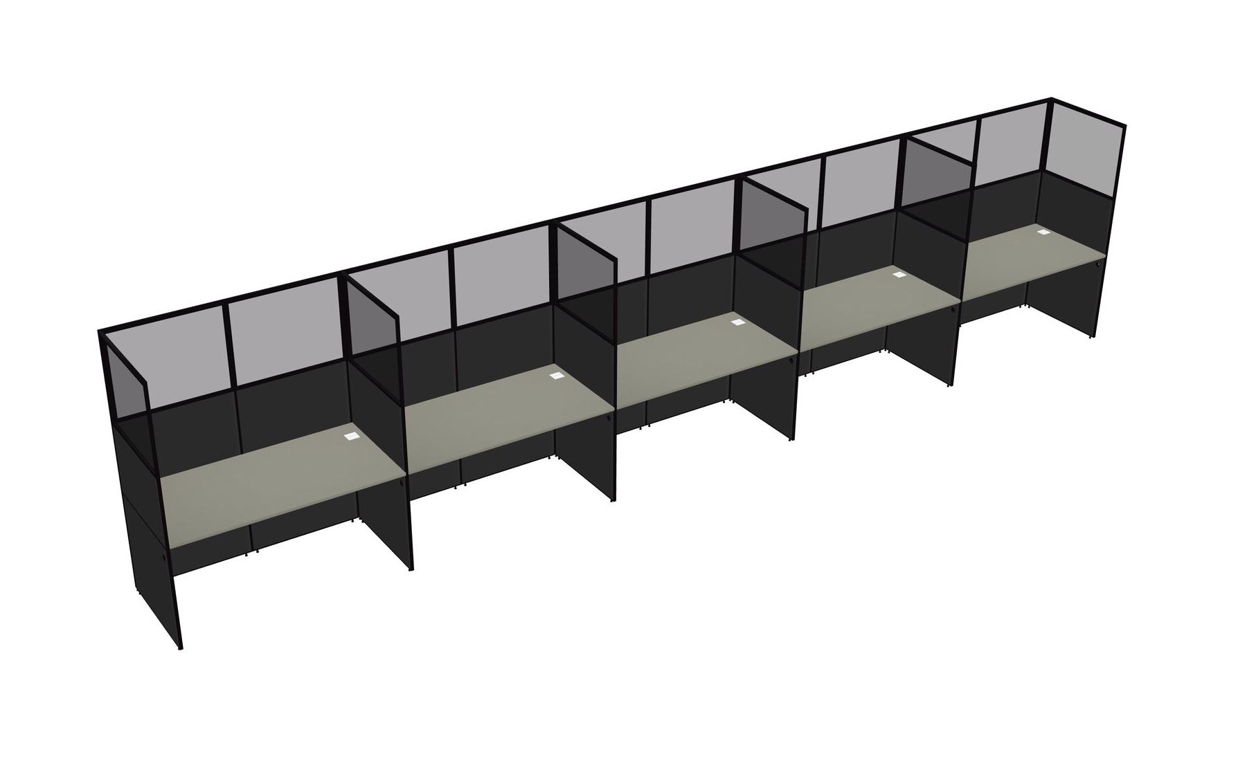 Grey Shadows Shared Rectangular Office Cubicle Panel System For 5 Persons