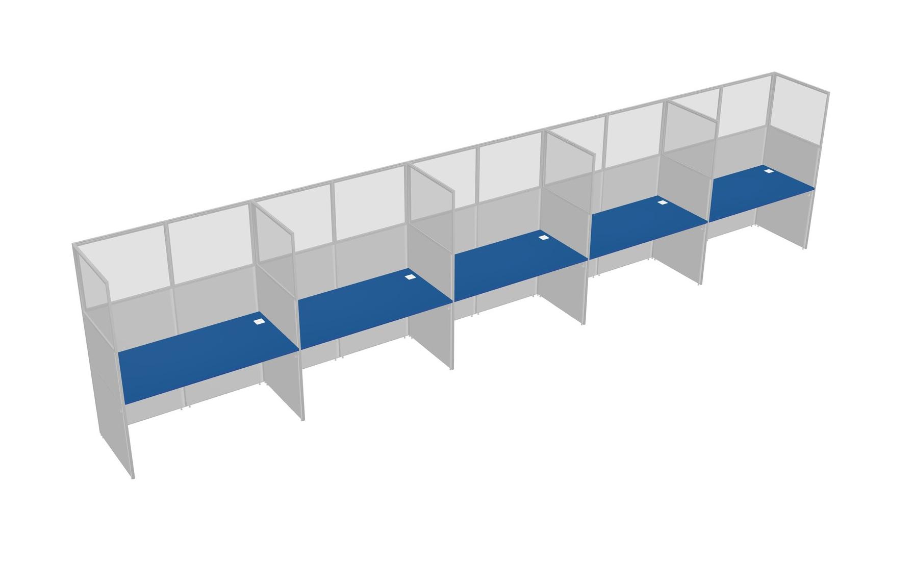 Prism Blue Shared Rectangular Office Cubicle Panel System For 5 Persons