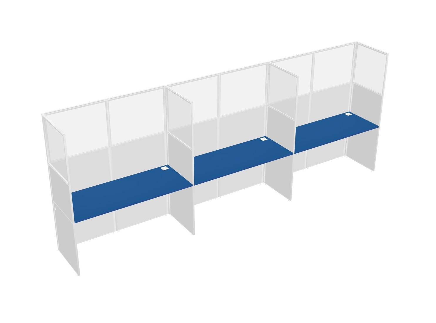 Prism Blue Shared Rectangular Office Cubicle Panel System For 3 Persons