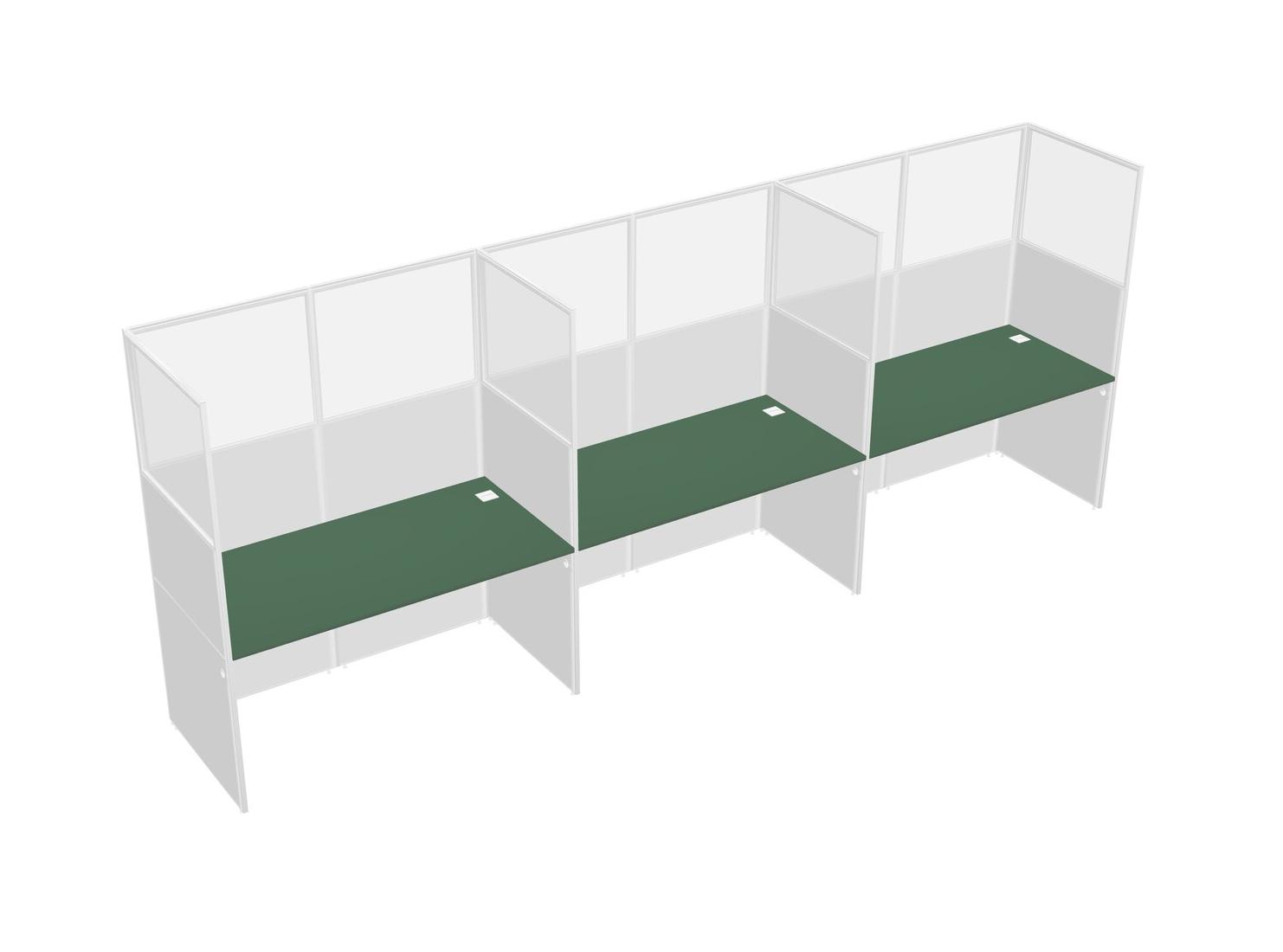Green Shared Rectangular Office Cubicle Panel System For 3 Persons