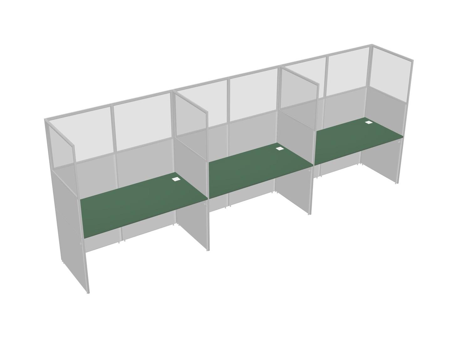 Green Shared Rectangular Office Cubicle Panel System For 3 Persons
