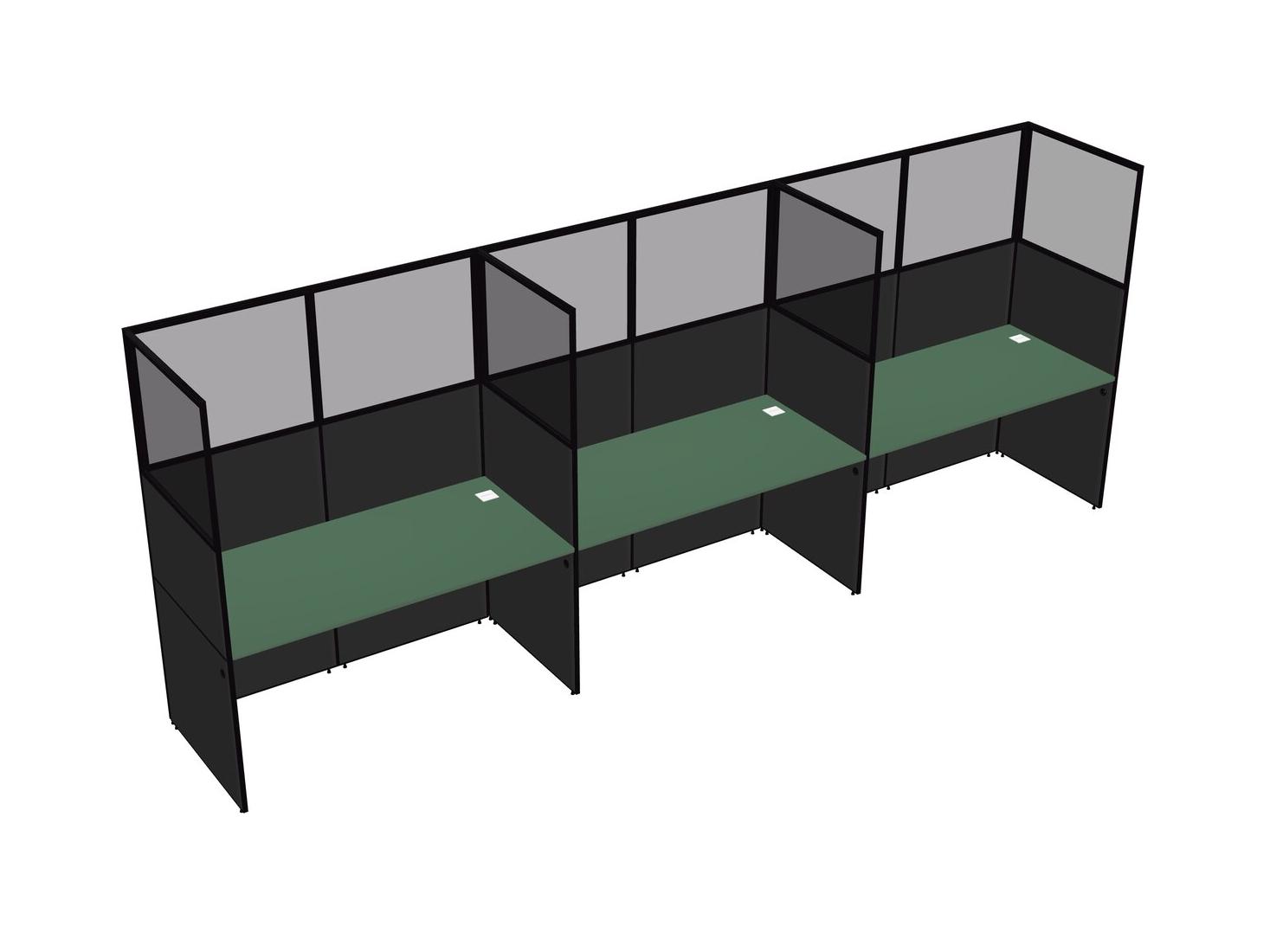 Green Shared Rectangular Office Cubicle Panel System For 3 Persons