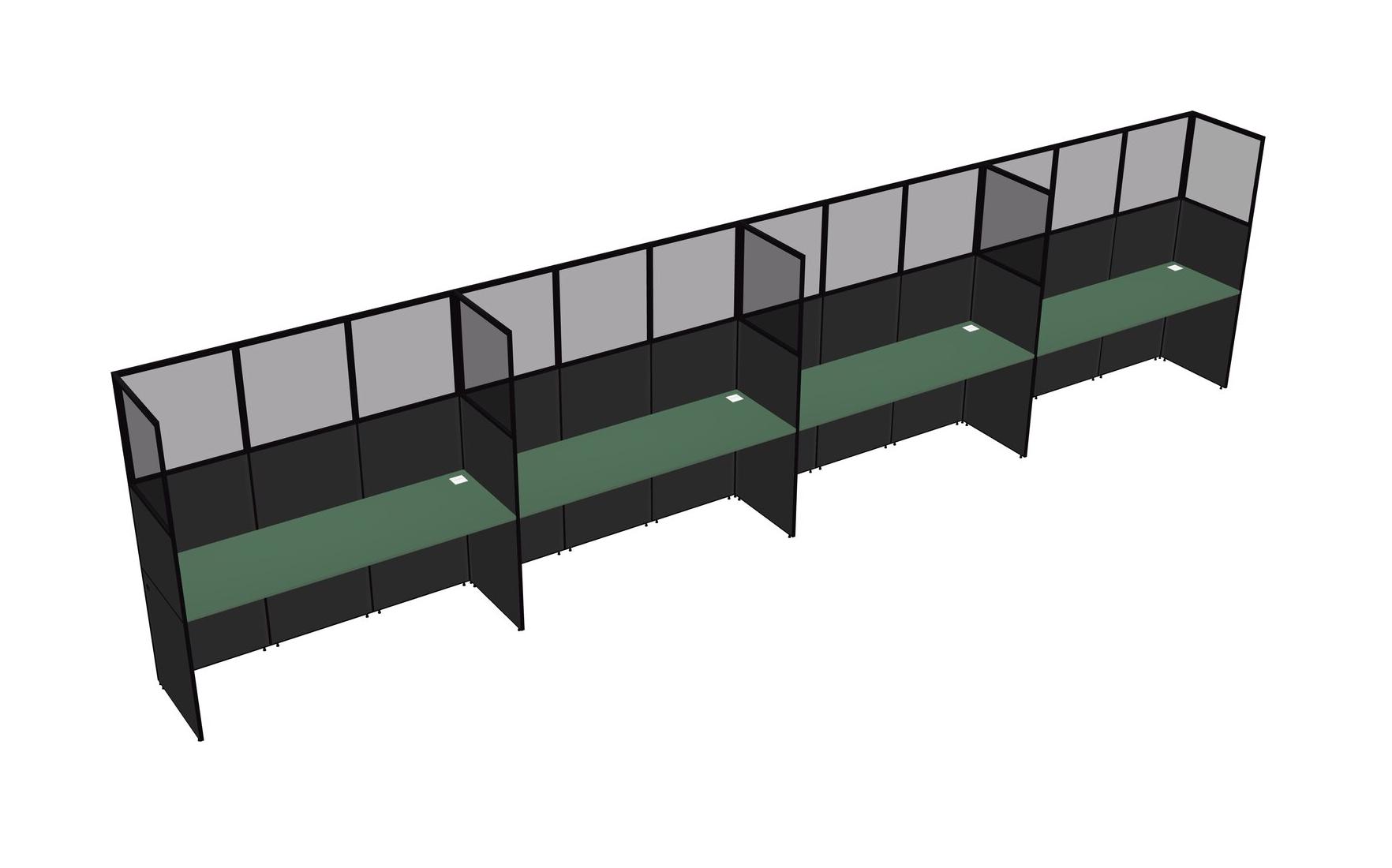 Green Shared Rectangular Office Cubicle Panel System For 4 Persons