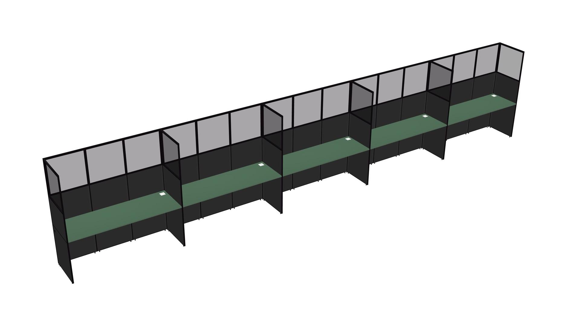 Green Shared Rectangular Office Cubicle Panel System For 5 Persons