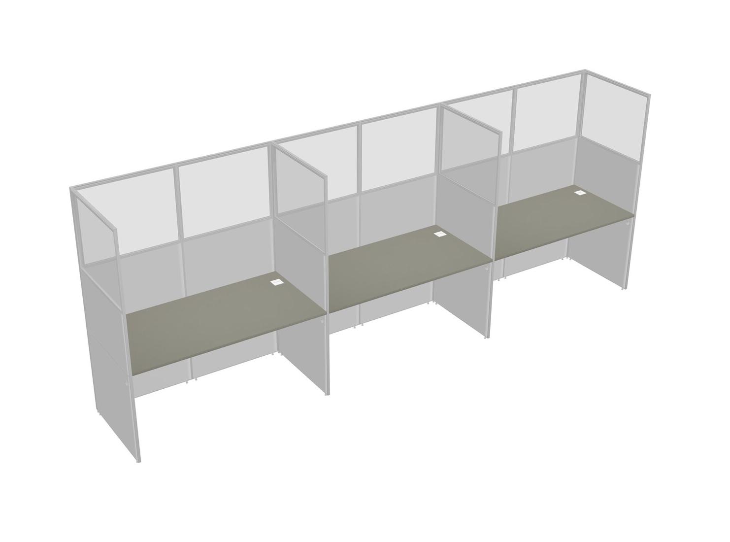 Grey Shadows Shared Rectangular Office Cubicle Panel System For 3 Persons