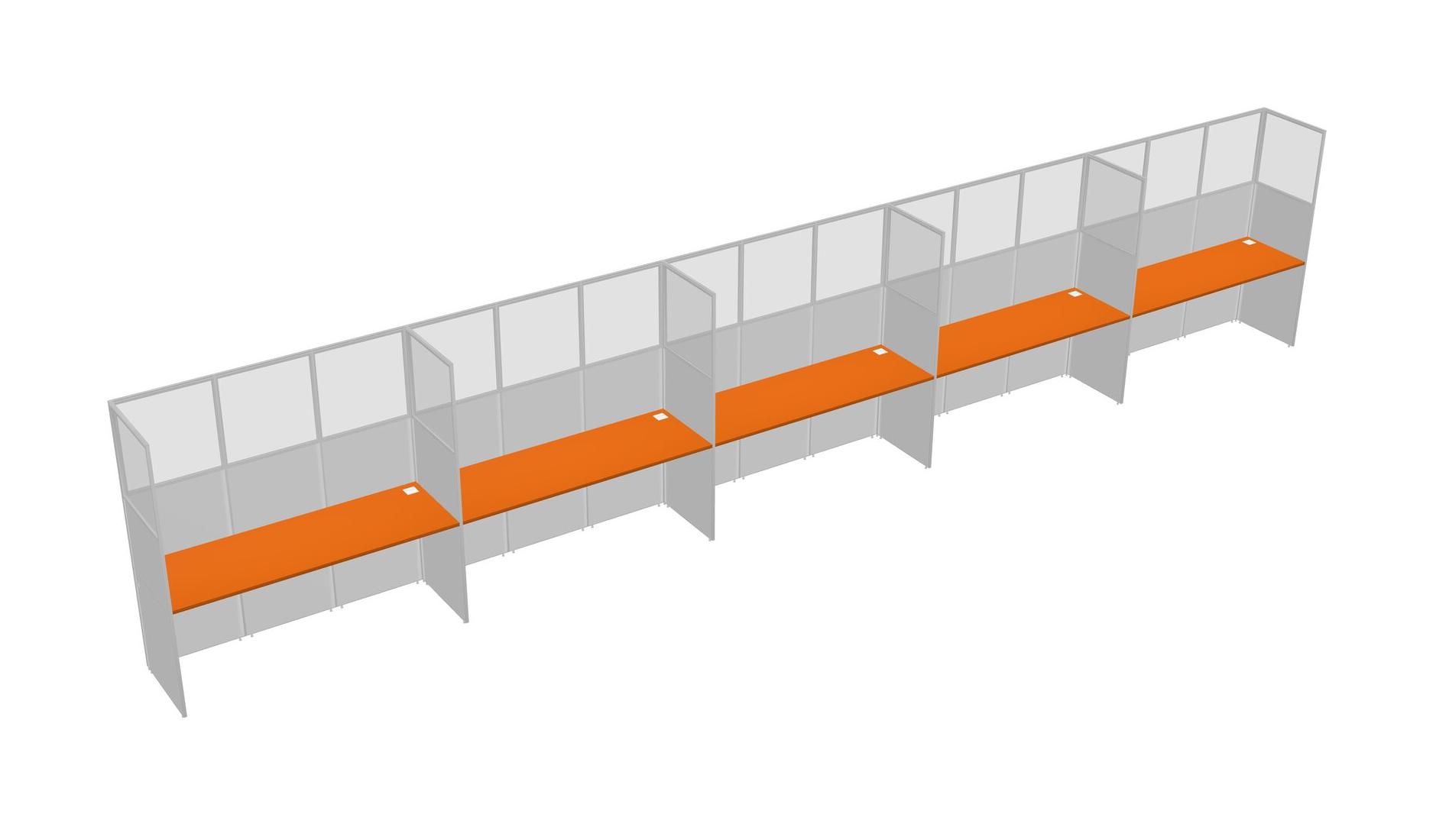 Orange Shared Rectangular Office Cubicle Panel System For 5 Persons