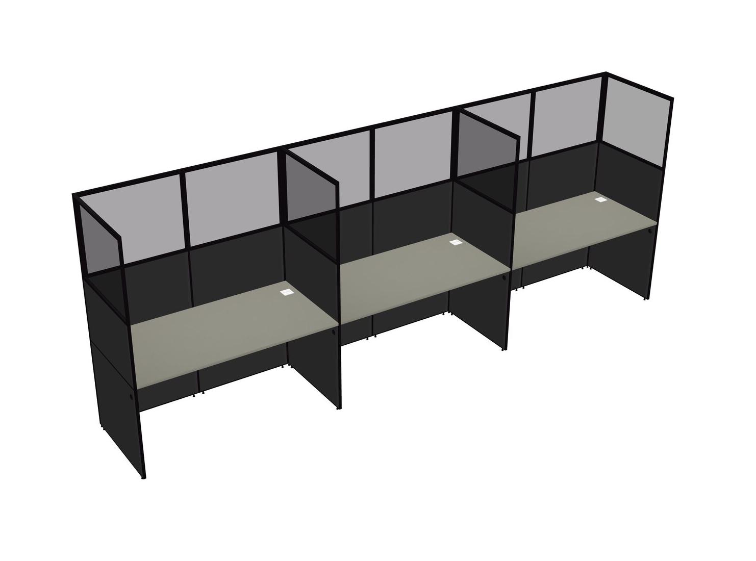 Grey Shadows Shared Rectangular Office Cubicle Panel System For 3 Persons