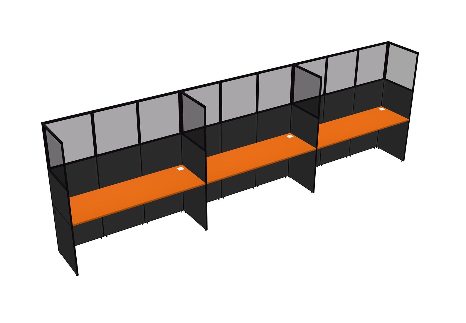 Orange Shared Rectangular Office Cubicle Panel System For 3 Persons