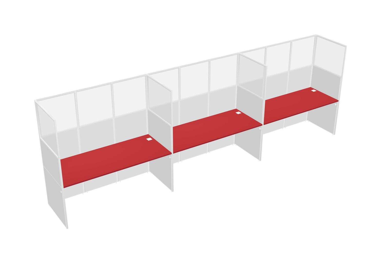Prism Red Shared Rectangular Office Cubicle Panel System For 3 Persons