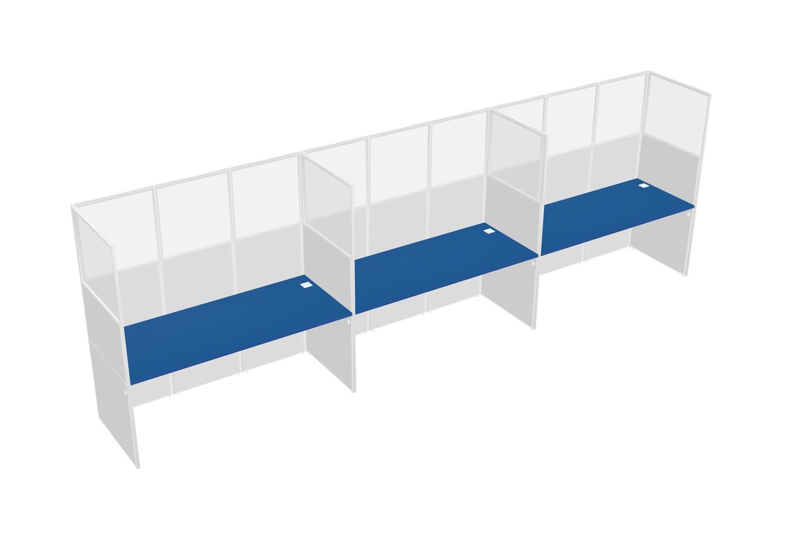 Prism Blue Shared Rectangular Office Cubicle Panel System For 3 Persons