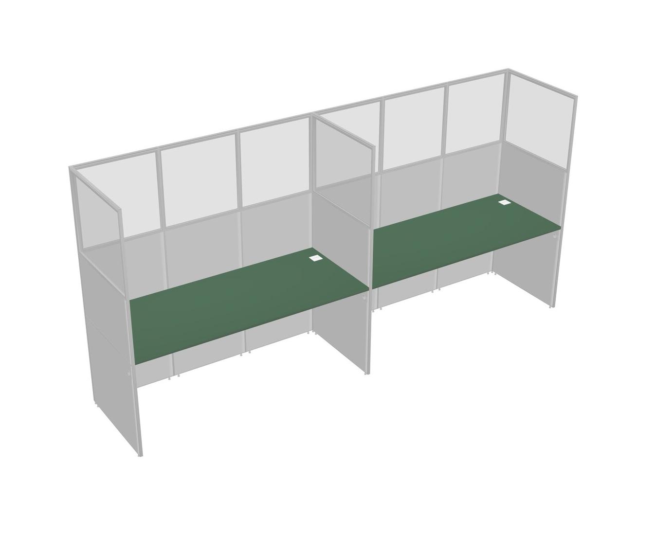 Green Shared Rectangular Office Cubicle Panel System For 2 Persons
