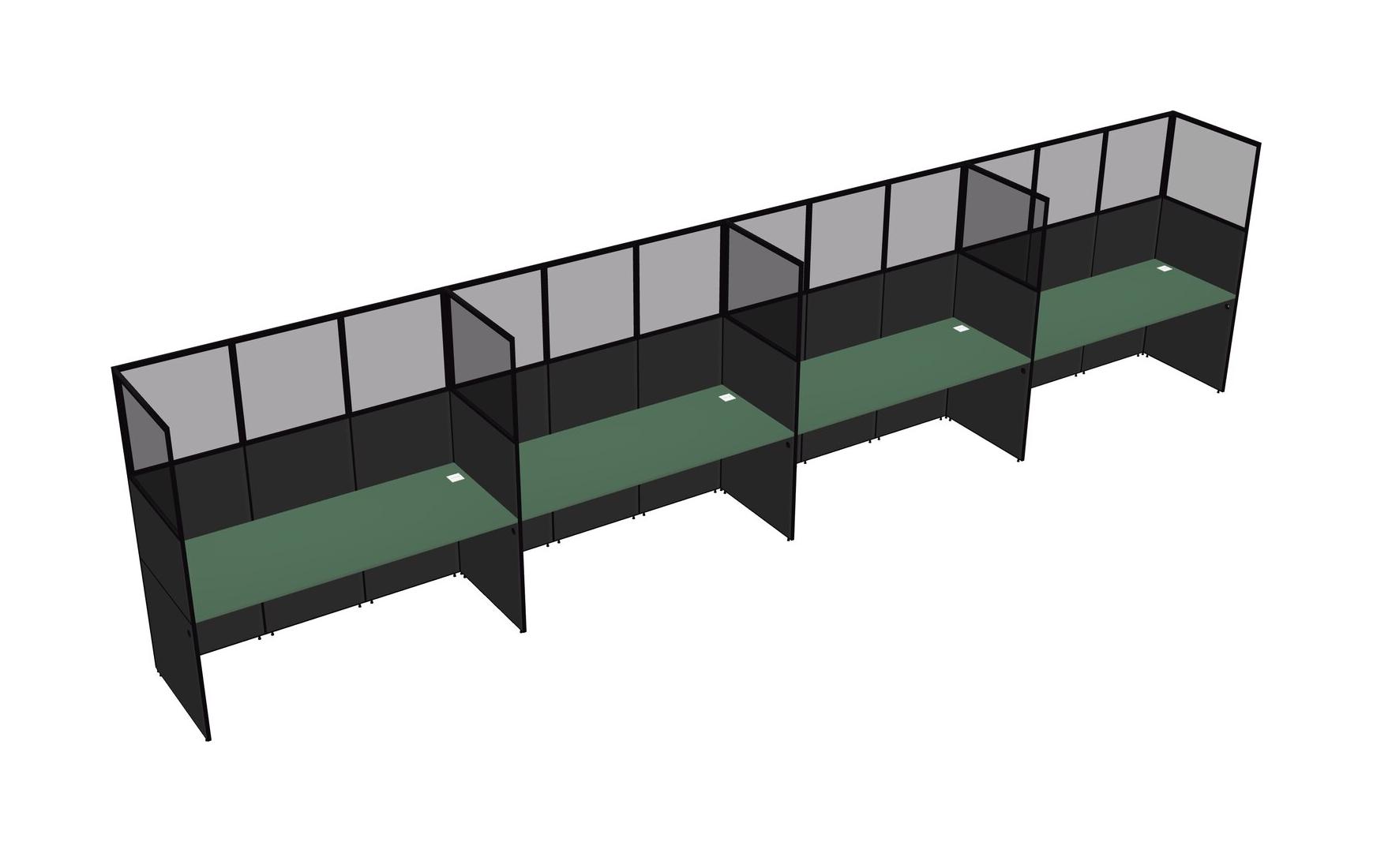 Green Shared Rectangular Office Cubicle Panel System For 4 Persons