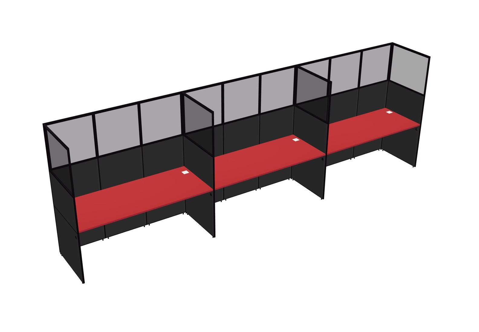 Prism Red Shared Rectangular Office Cubicle Panel System For 3 Persons