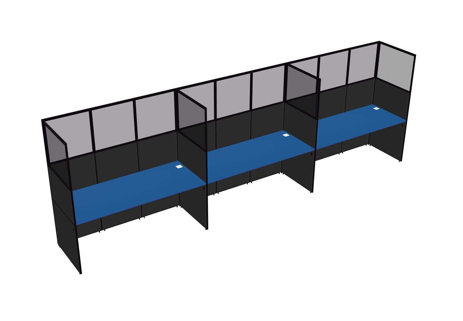 Prism Blue Shared Rectangular Office Cubicle Panel System For 3 Persons