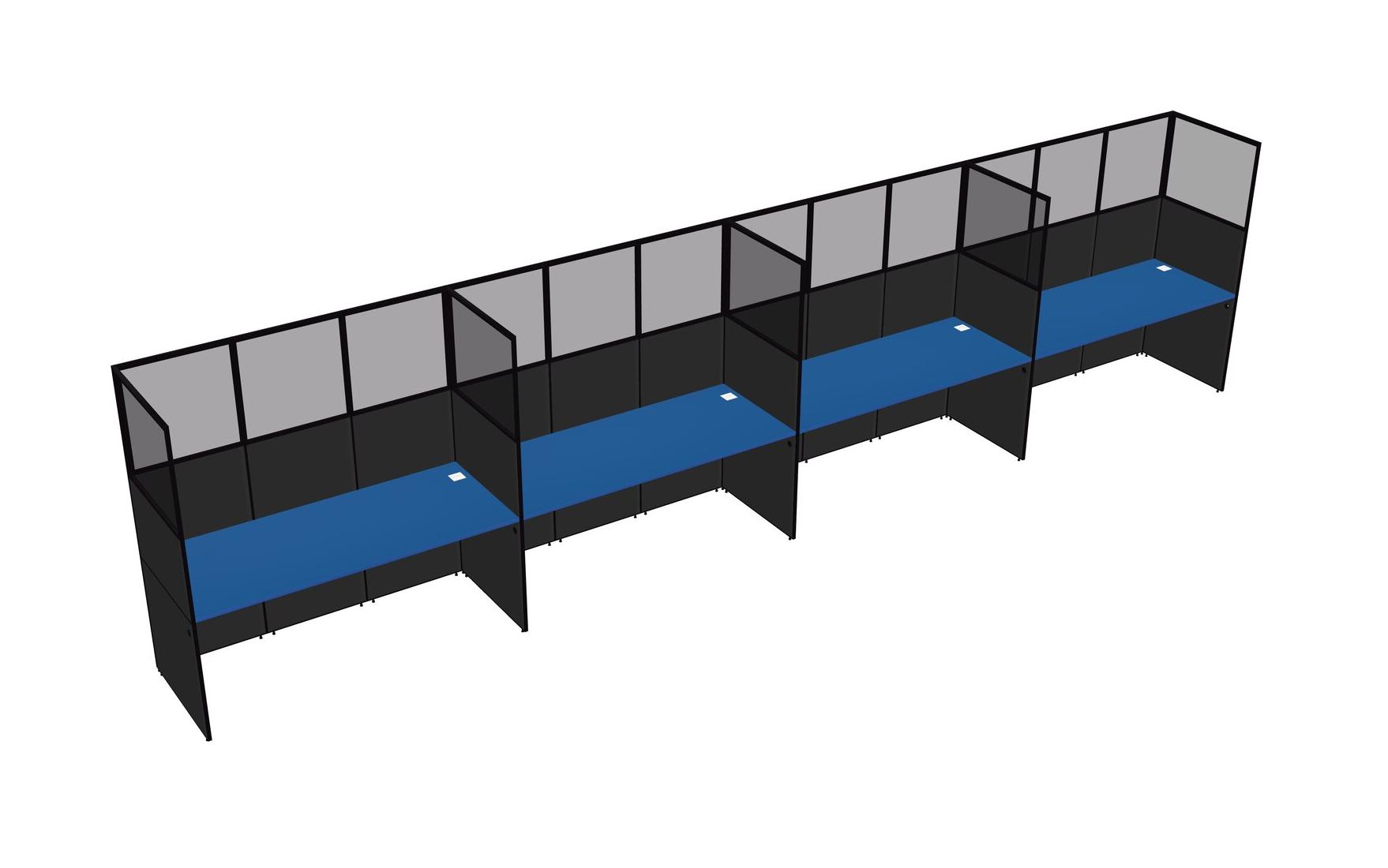 Prism Blue Shared Rectangular Office Cubicle Panel System For 4 Persons