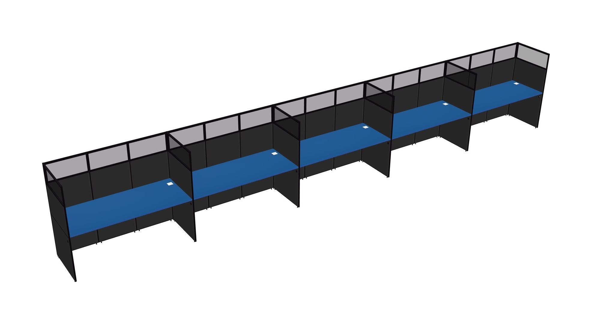 Prism Blue Shared Rectangular Office Cubicle Panel System For 5 Persons