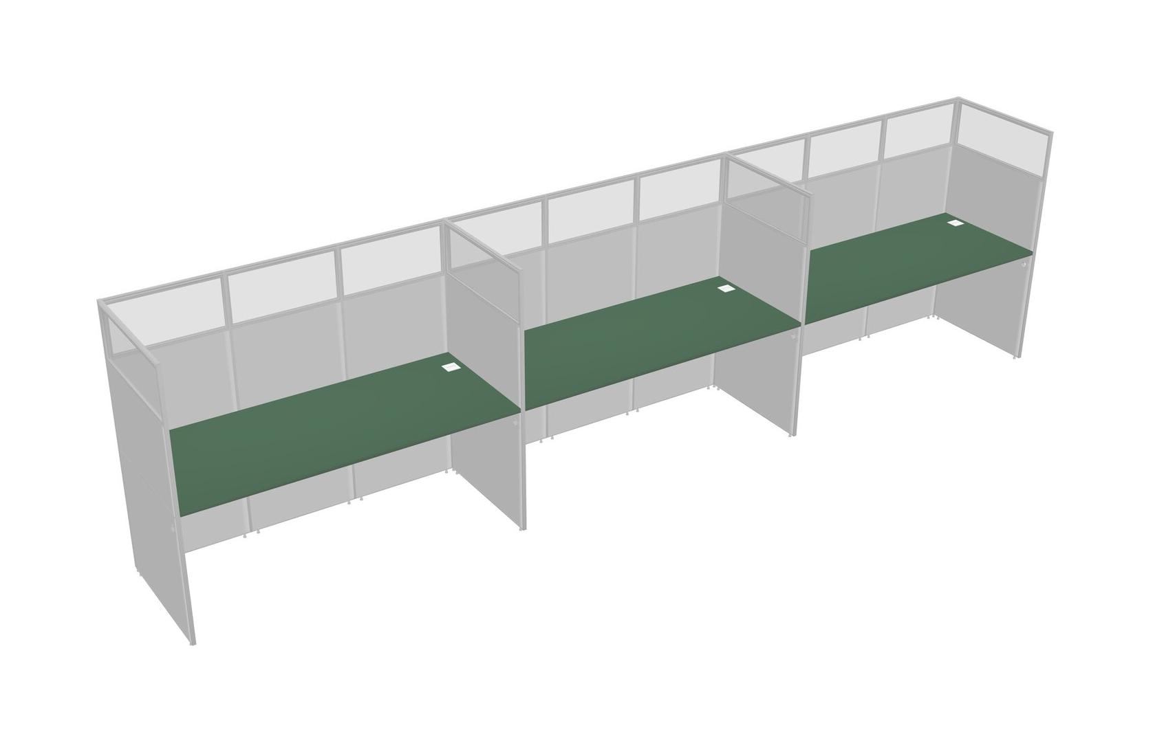 Green Shared Rectangular Office Cubicle Panel System For 3 Persons