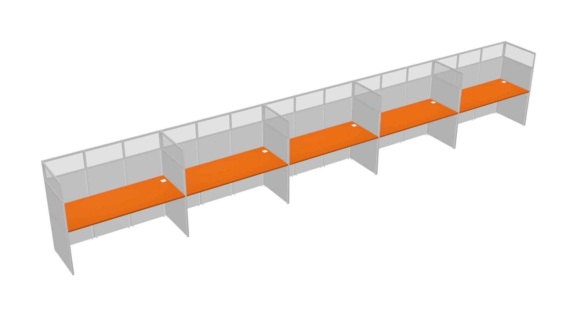 Orange Shared Rectangular Office Cubicle Panel System For 5 Persons
