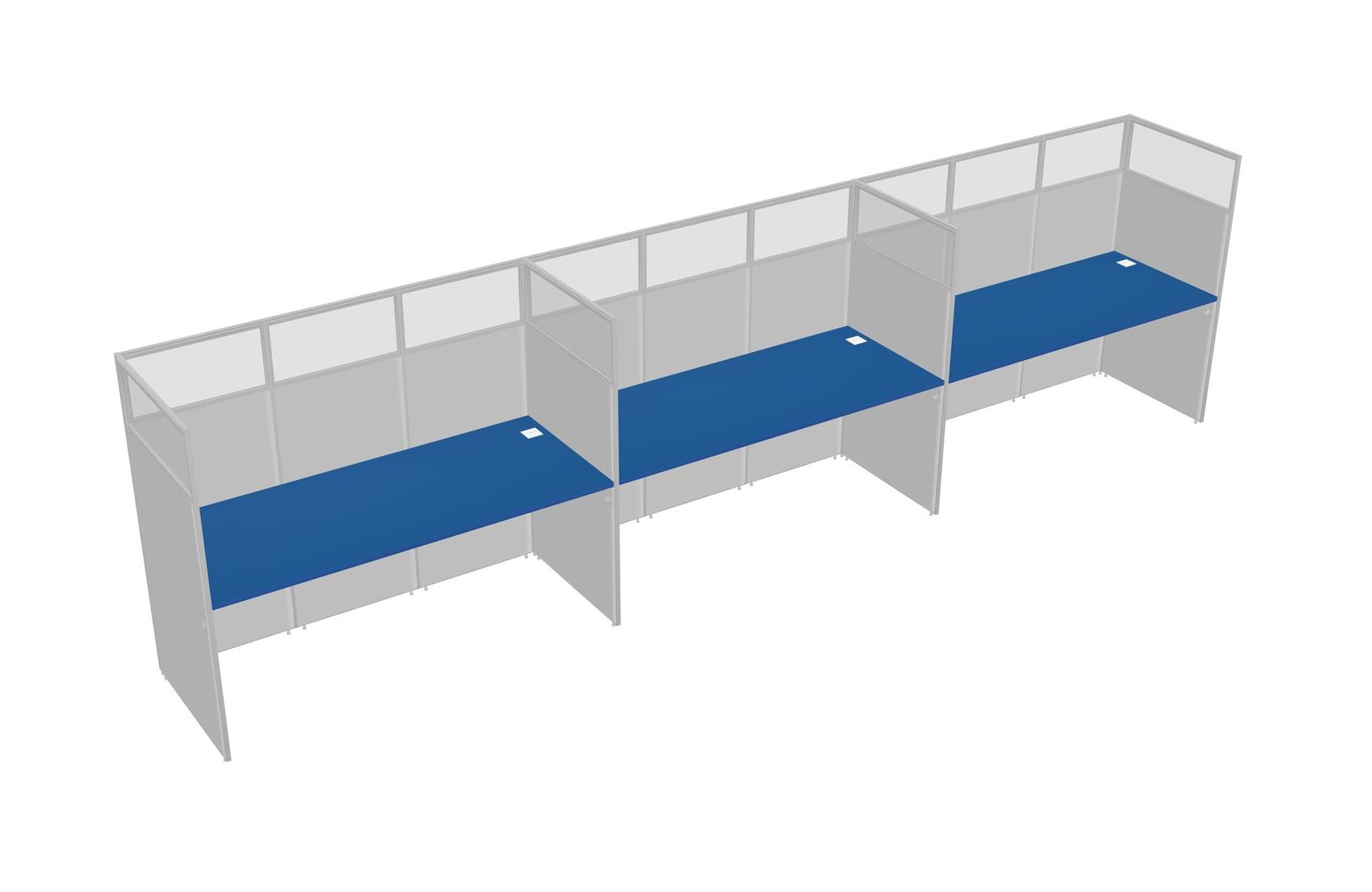 Prism Blue Shared Rectangular Office Cubicle Panel System For 3 Persons