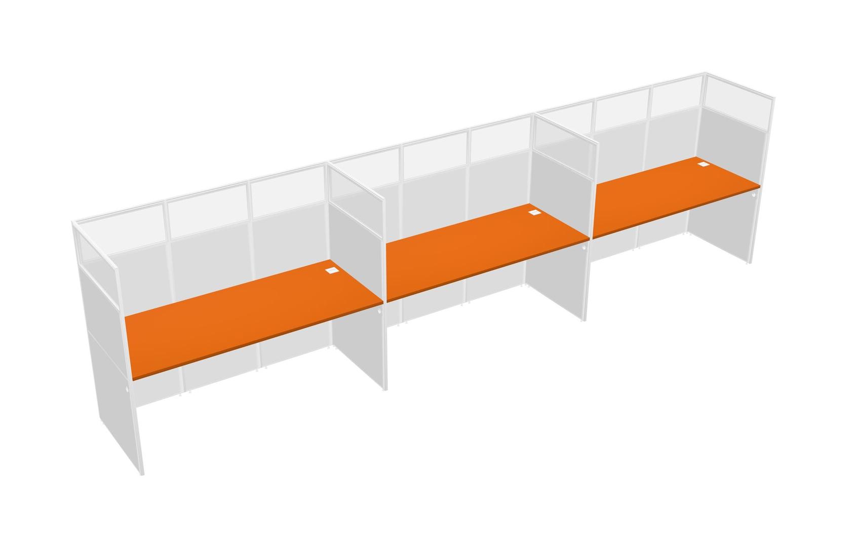 Orange Shared Rectangular Office Cubicle Panel System For 3 Persons