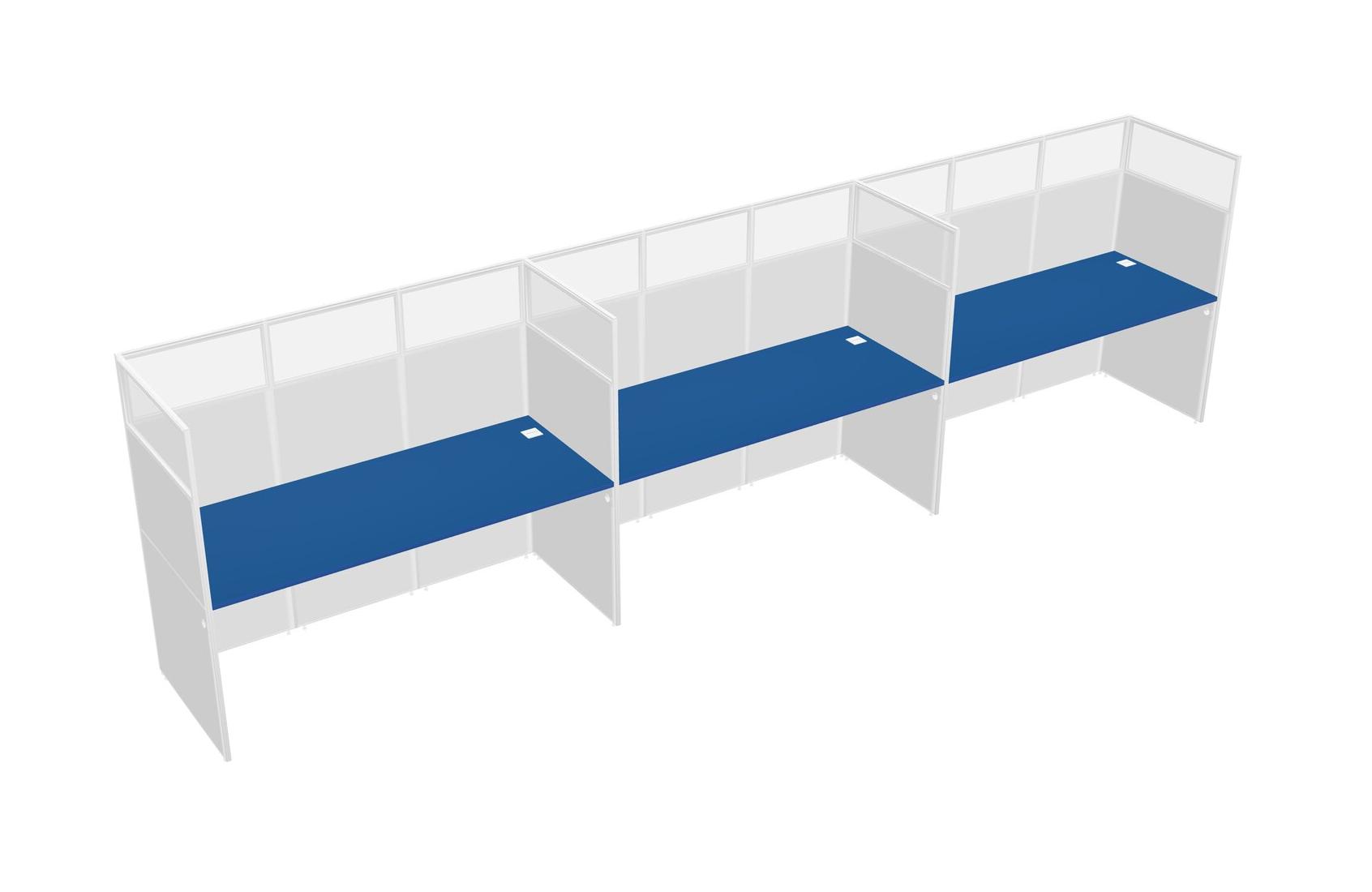 Prism Blue Shared Rectangular Office Cubicle Panel System For 3 Persons