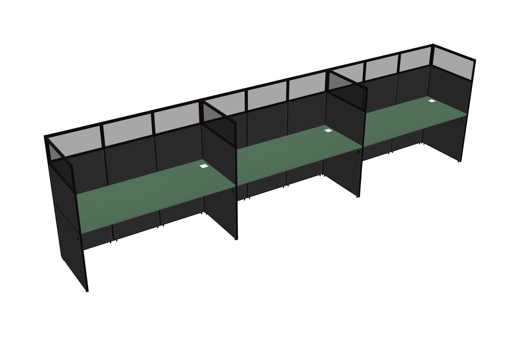 Green Shared Rectangular Office Cubicle Panel System For 3 Persons