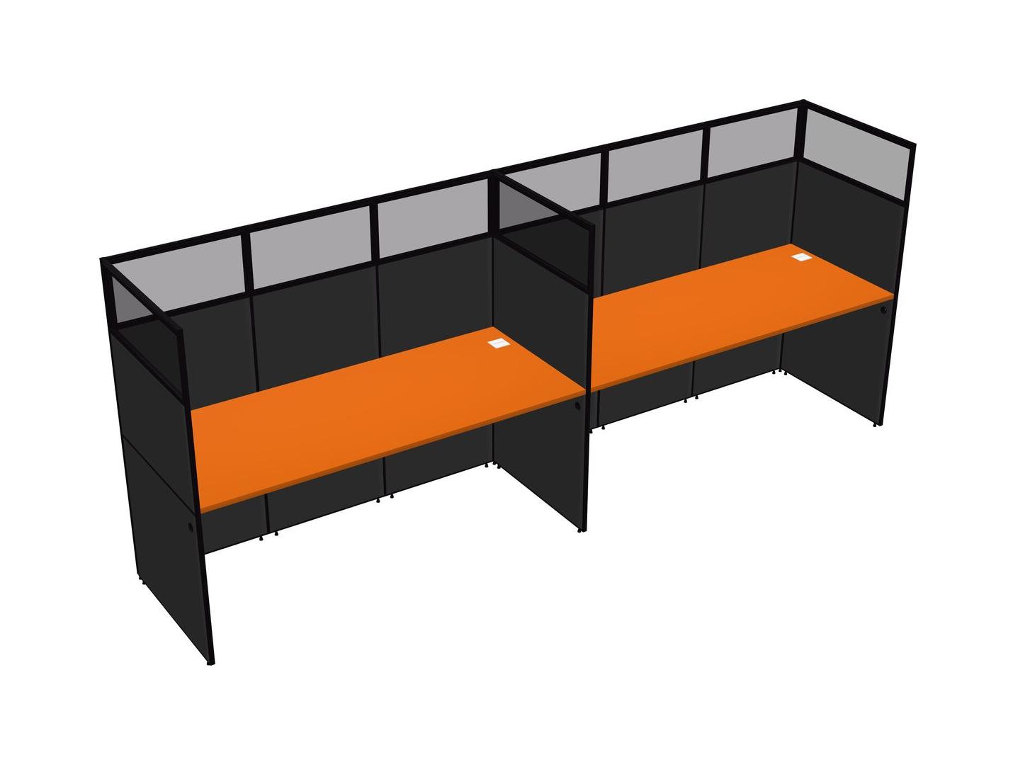 Orange Shared Rectangular Office Cubicle Panel System For 2 Persons