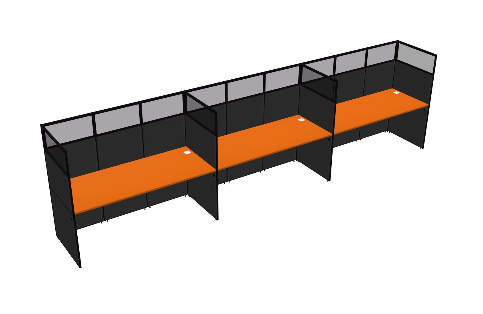 Orange Shared Rectangular Office Cubicle Panel System For 3 Persons