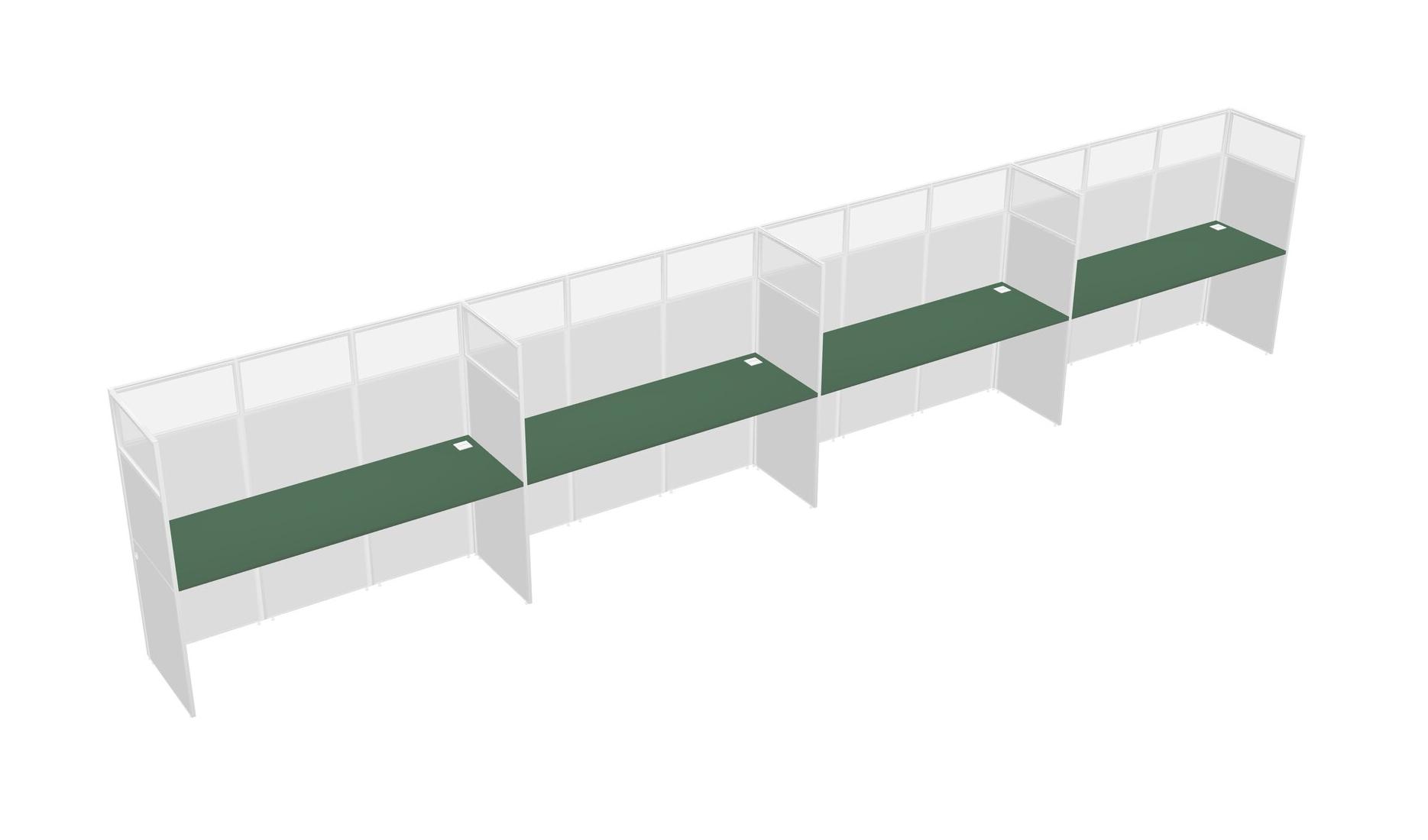 Green Shared Rectangular Office Cubicle Panel System For 4 Persons