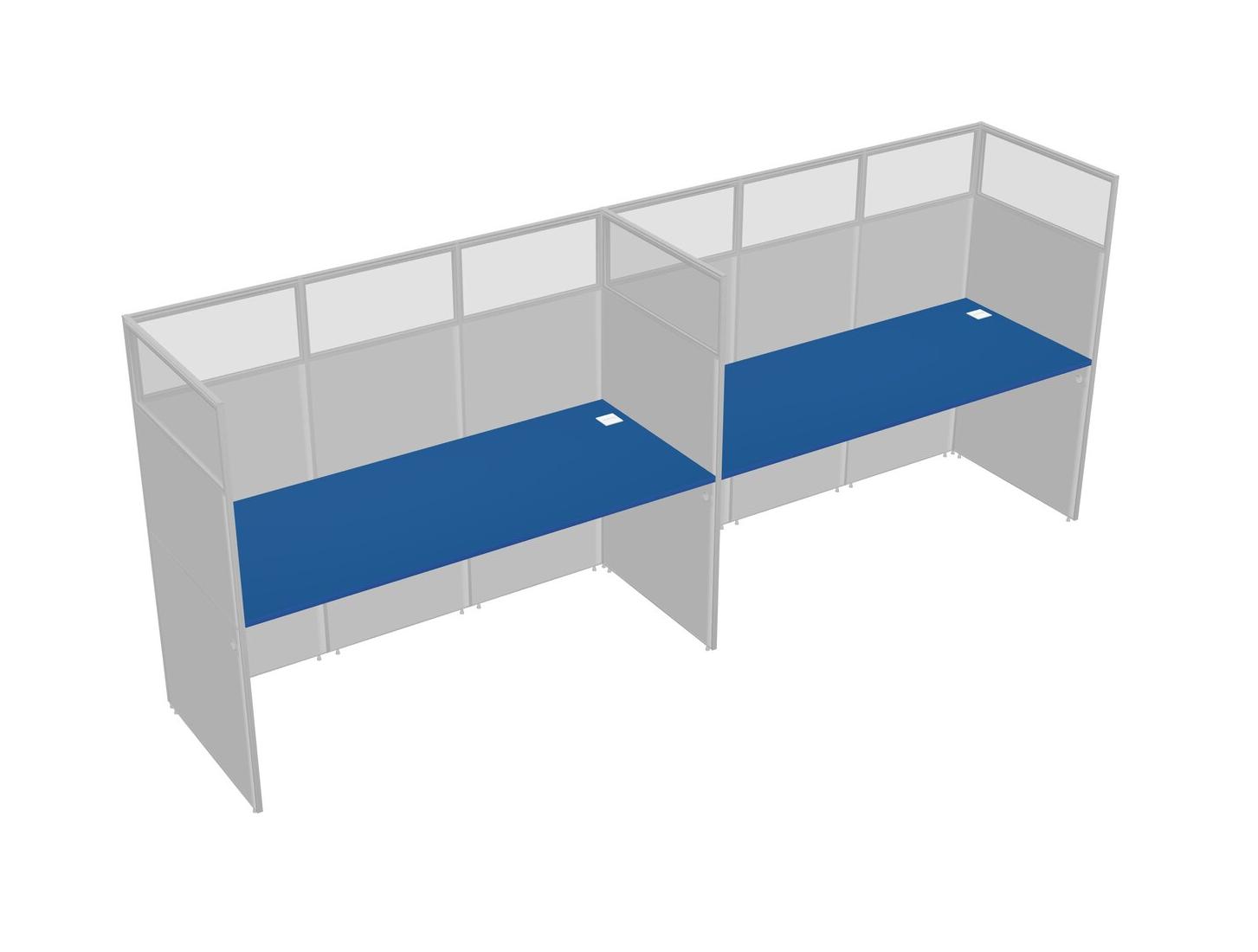 Prism Blue Shared Rectangular Office Cubicle Panel System For 2 Persons