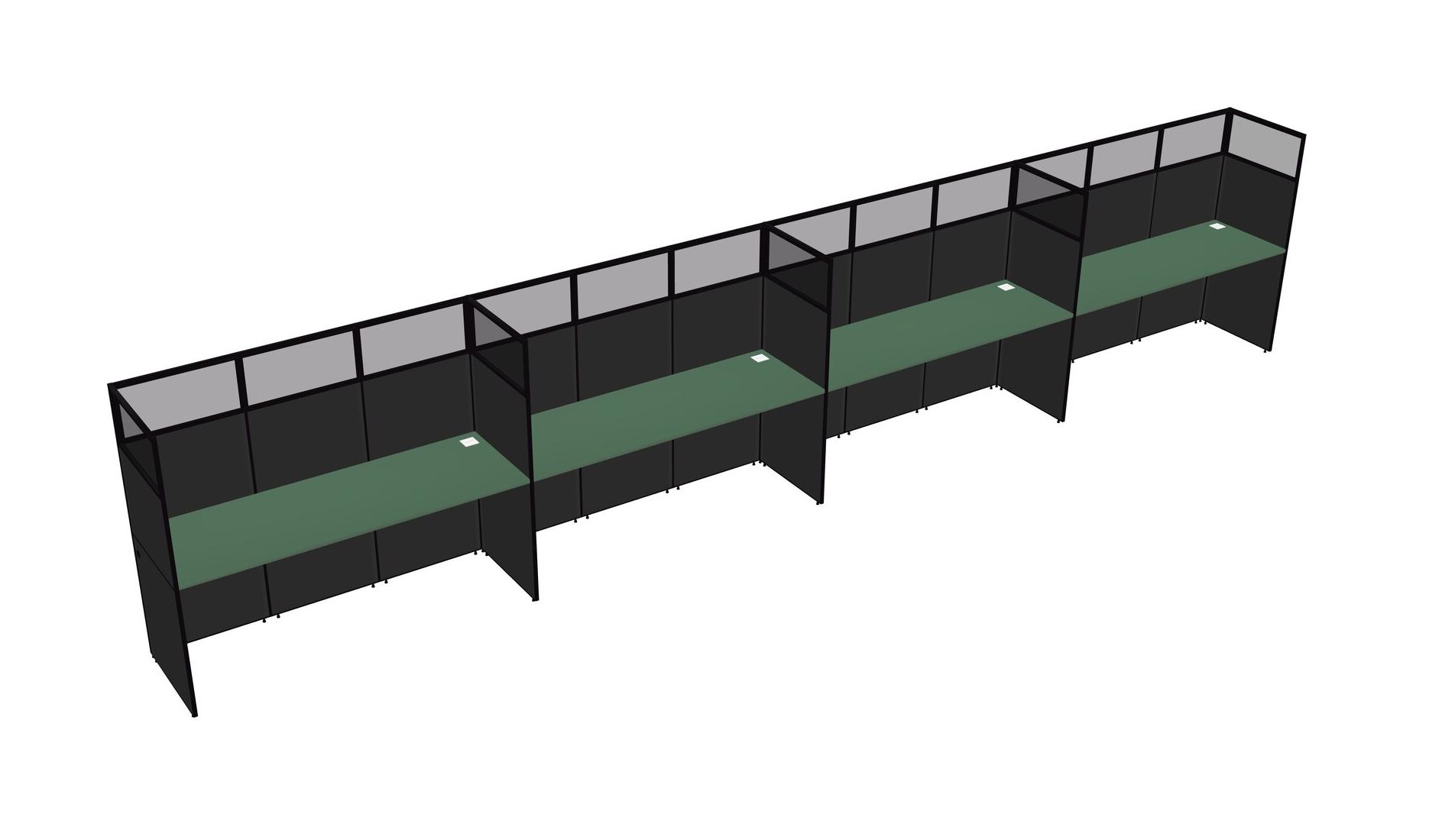 Green Shared Rectangular Office Cubicle Panel System For 4 Persons