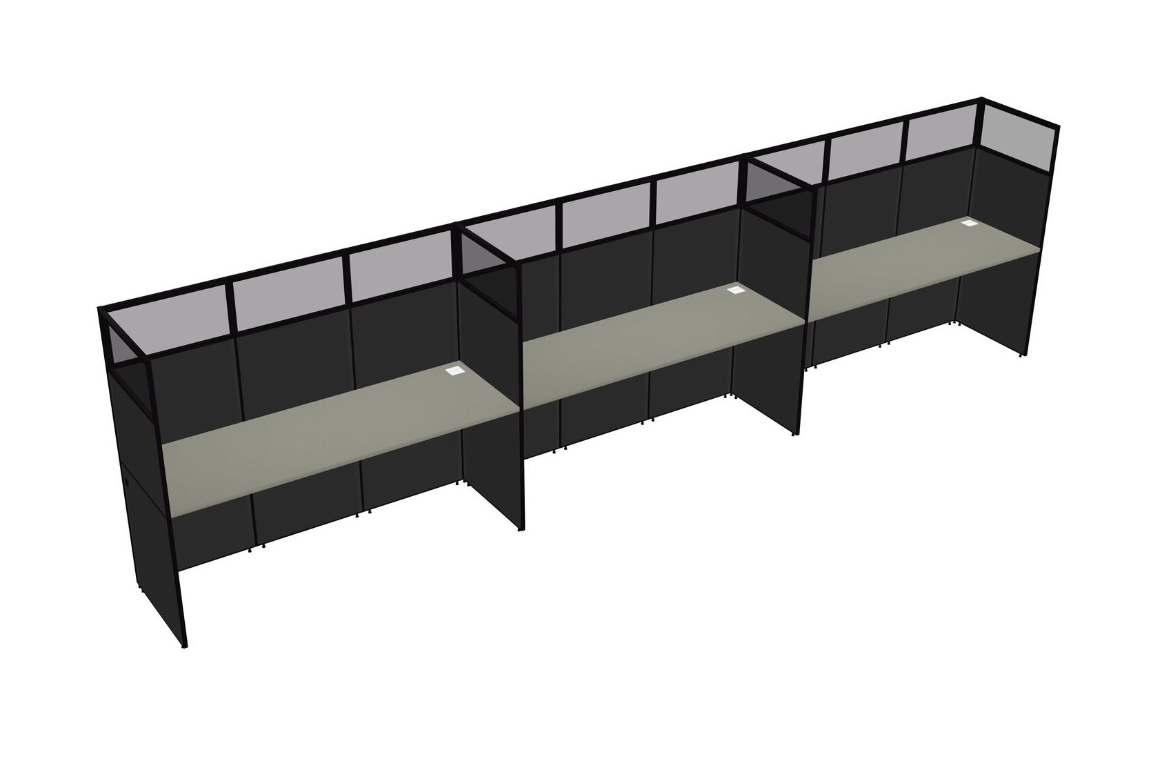 Grey Shadows Shared Rectangular Office Cubicle Panel System For 3 Persons