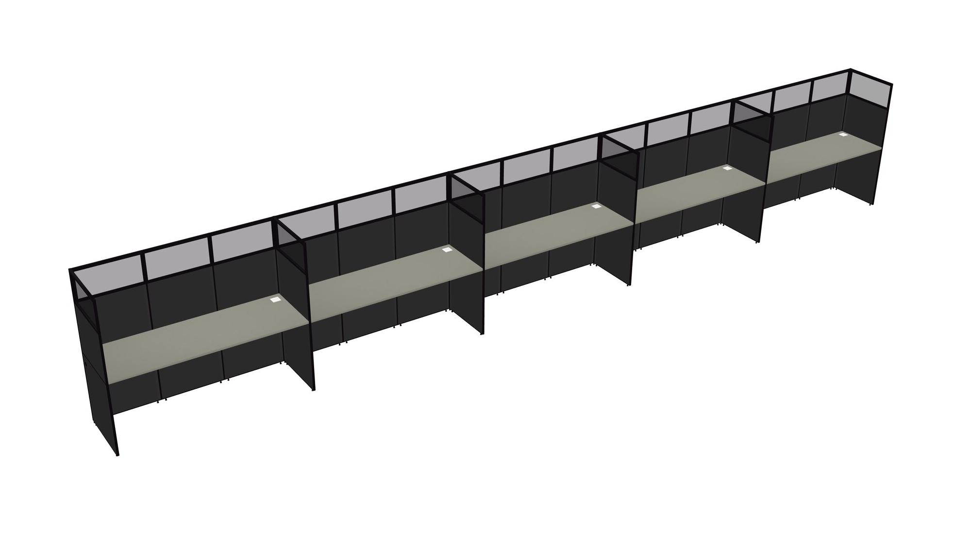 Grey Shadows Shared Rectangular Office Cubicle Panel System For 5 Persons