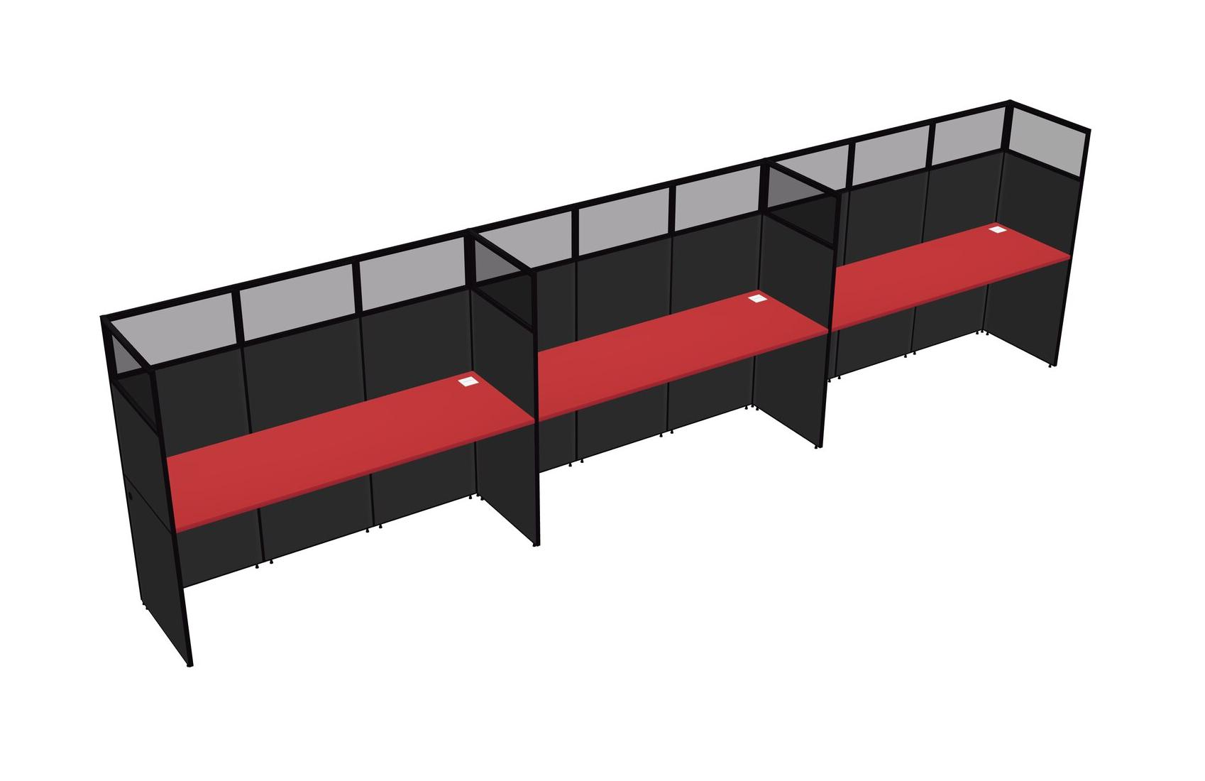 Prism Red Shared Rectangular Office Cubicle Panel System For 3 Persons