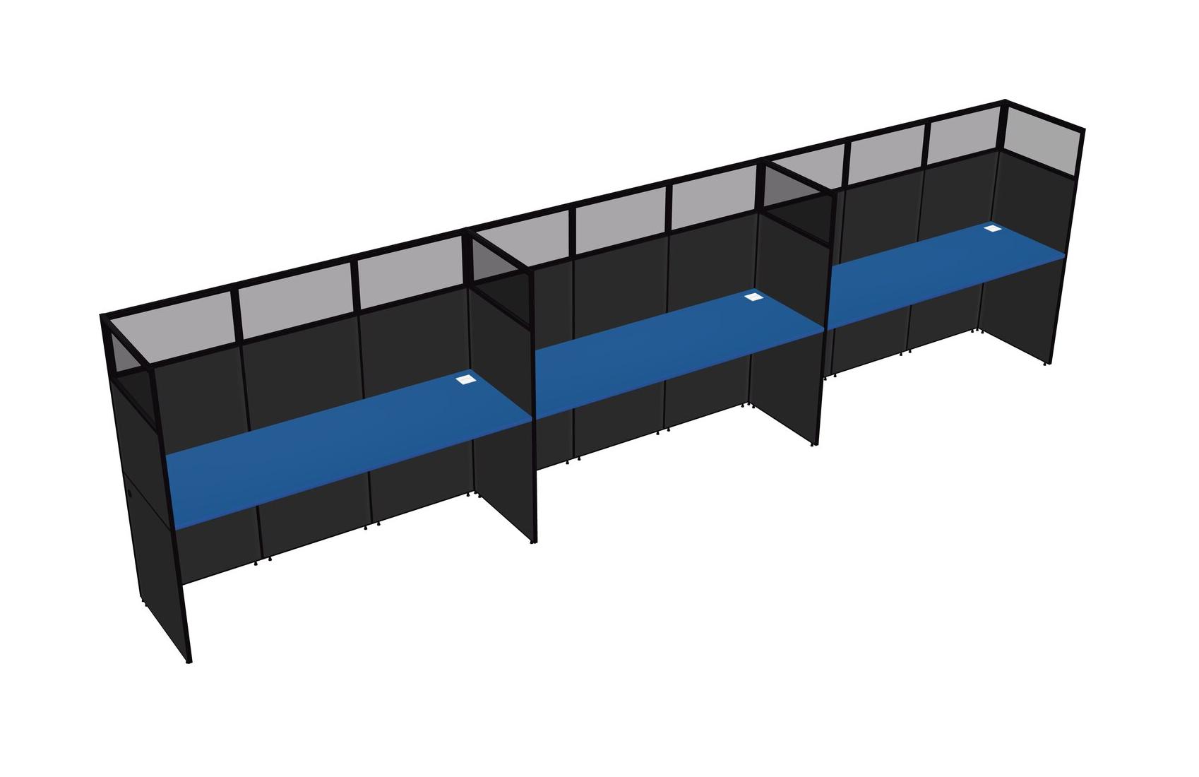 Prism Blue Shared Rectangular Office Cubicle Panel System For 3 Persons