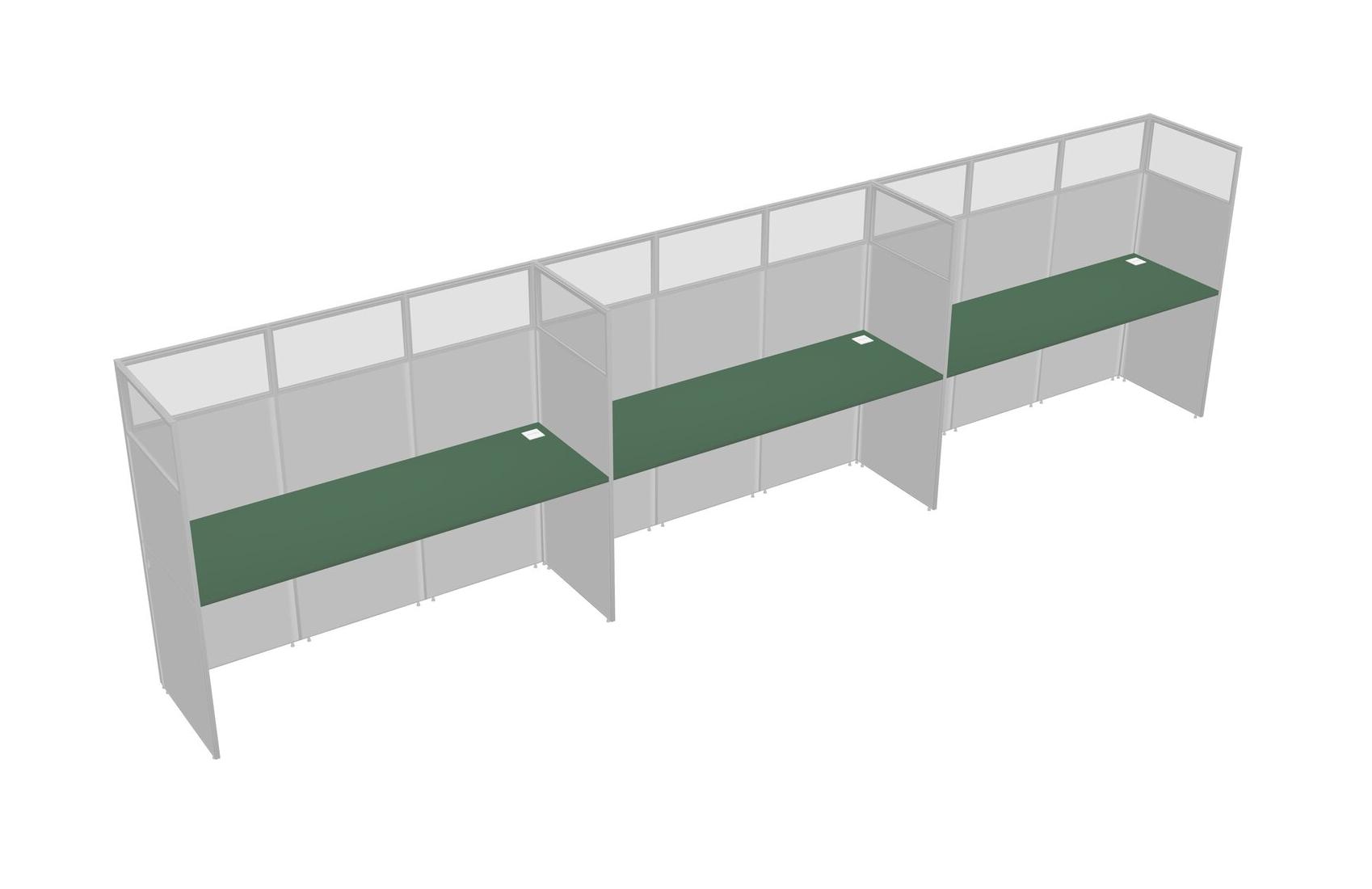 Green Shared Rectangular Office Cubicle Panel System For 3 Persons