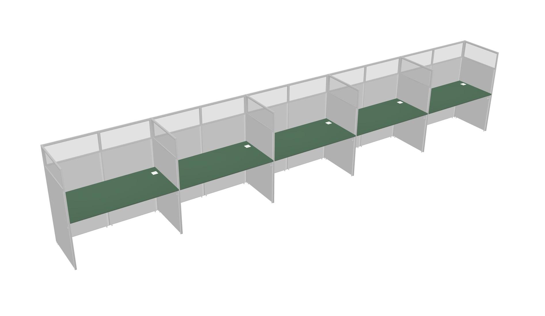 Green Shared Rectangular Office Cubicle Panel System For 5 Persons