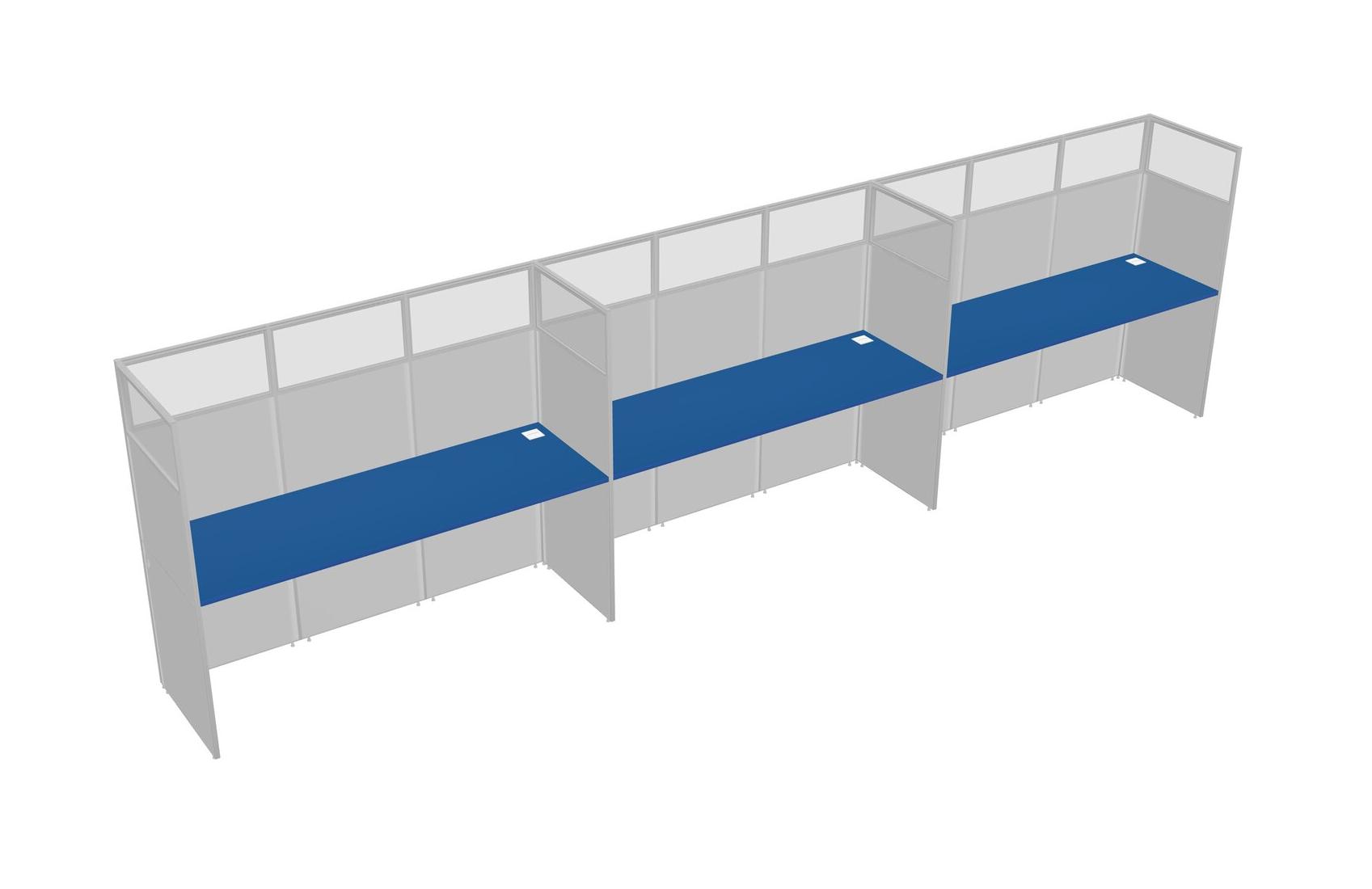 Prism Blue Shared Rectangular Office Cubicle Panel System For 3 Persons