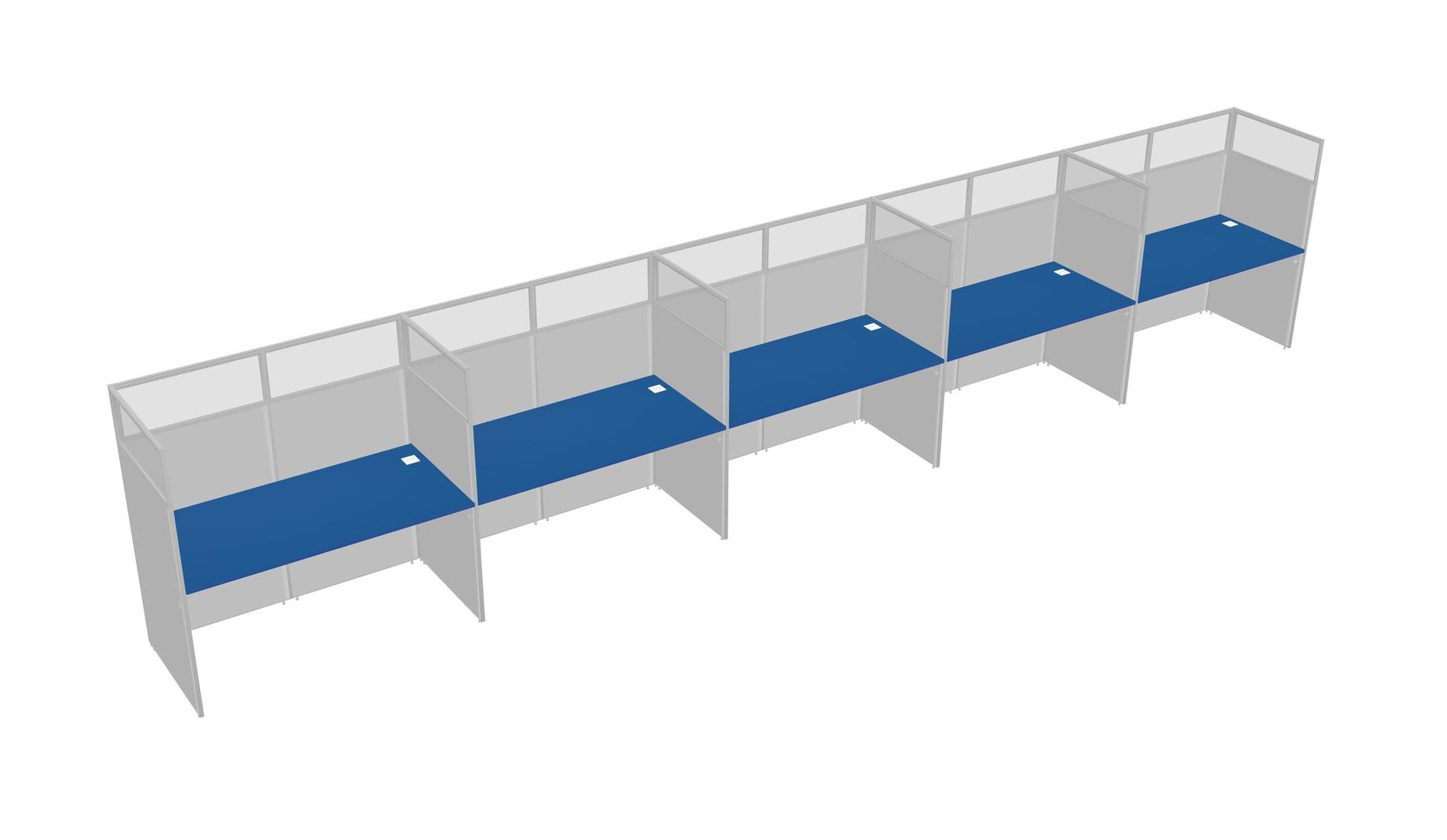Prism Blue Shared Rectangular Office Cubicle Panel System For 5 Persons