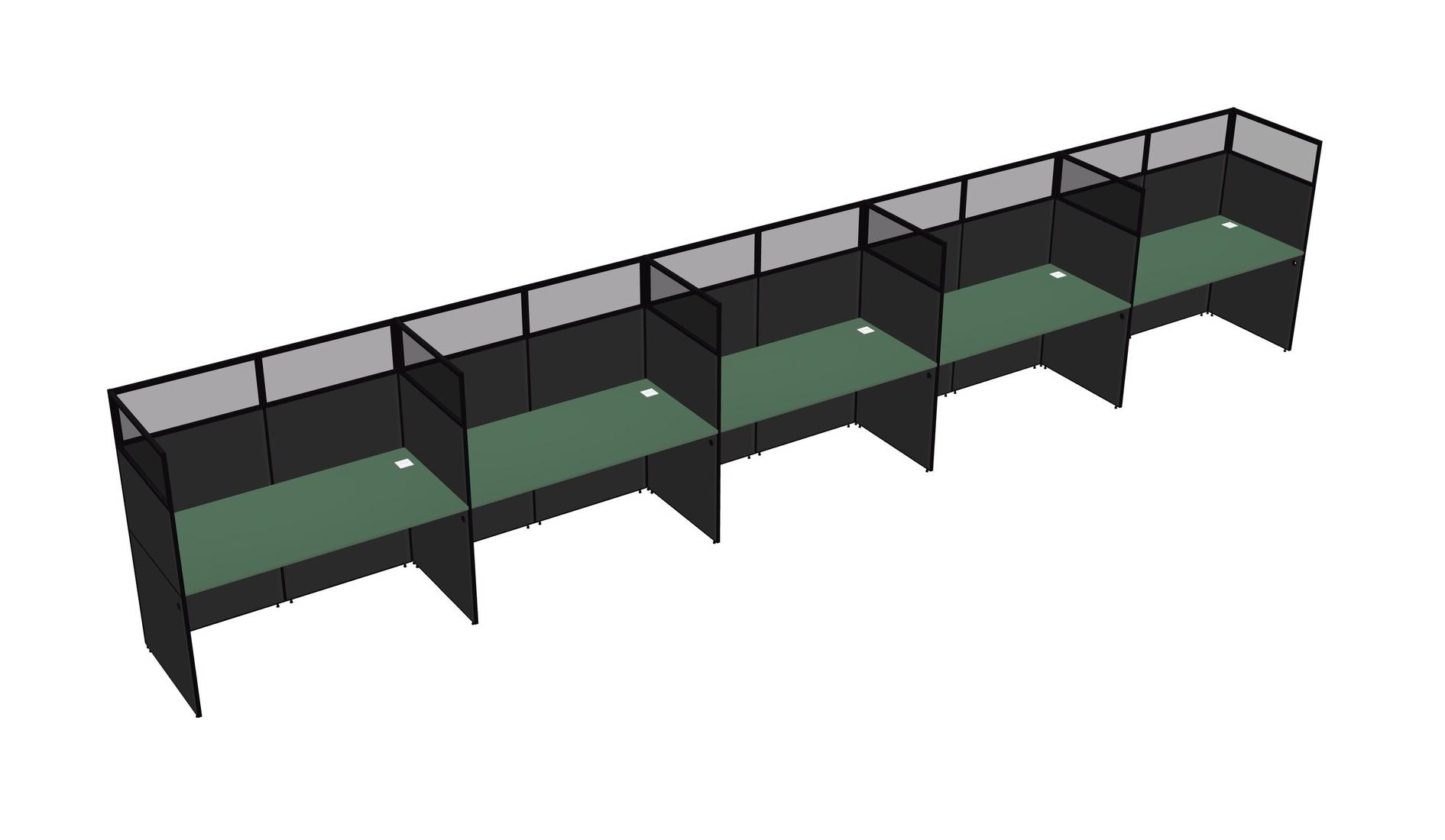Green Shared Rectangular Office Cubicle Panel System For 5 Persons