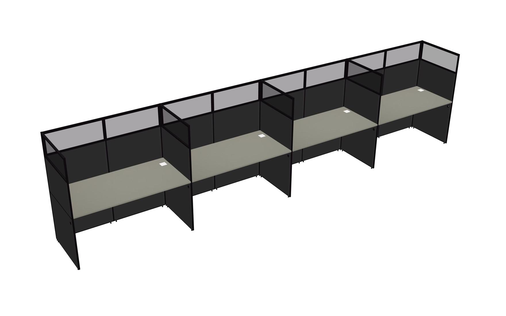 Grey Shadows Shared Rectangular Office Cubicle Panel System For 4 Persons