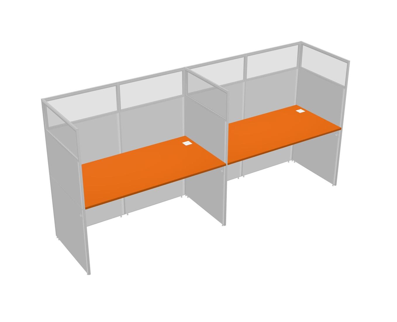 Orange Shared Rectangular Office Cubicle Panel System For 2 Persons