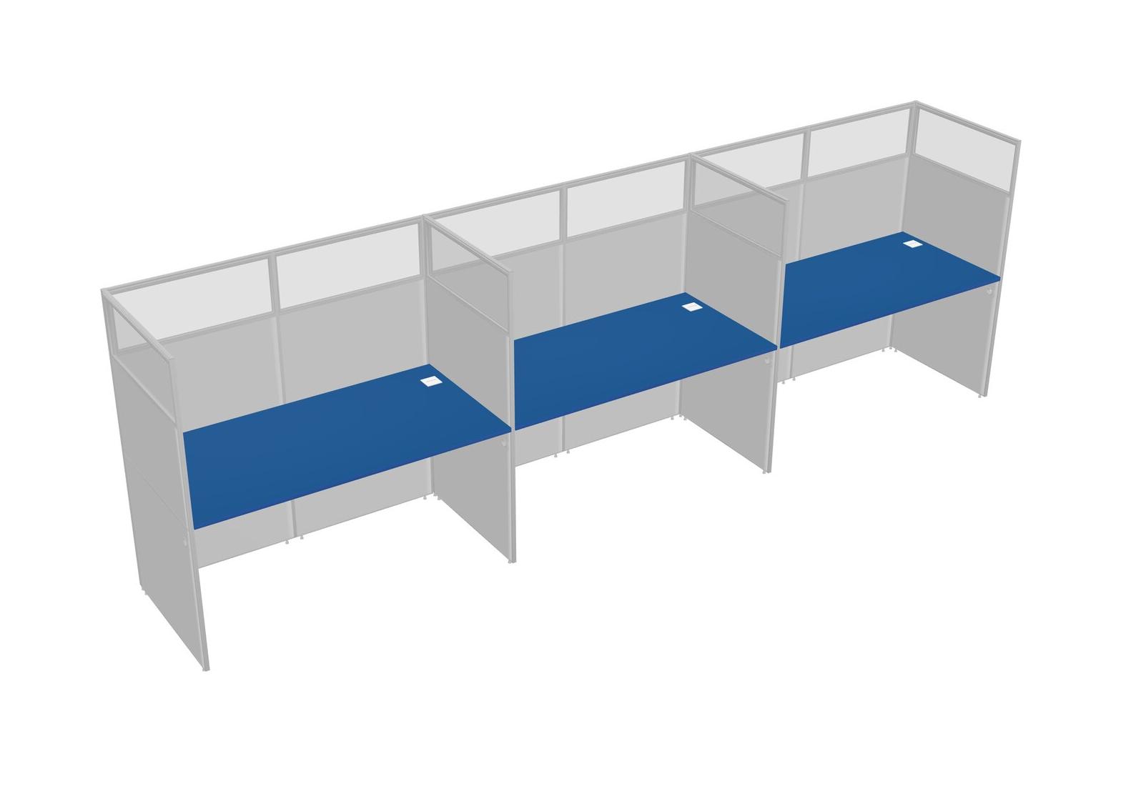 Prism Blue Shared Rectangular Office Cubicle Panel System For 3 Persons