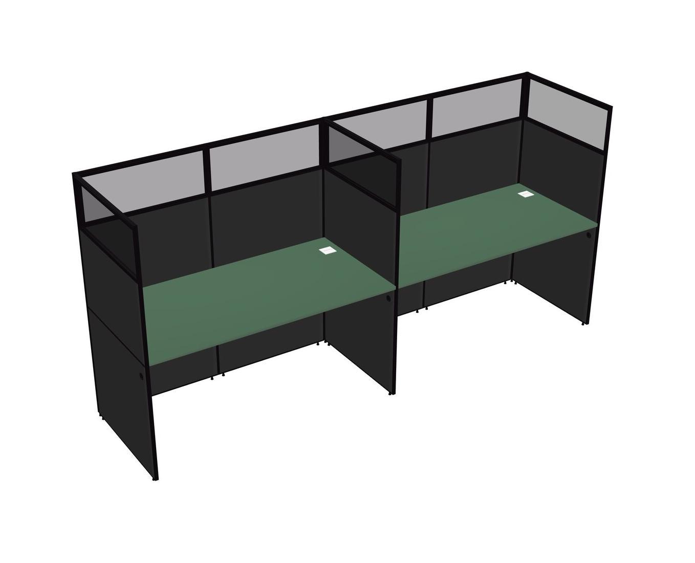 Green Shared Rectangular Office Cubicle Panel System For 2 Persons