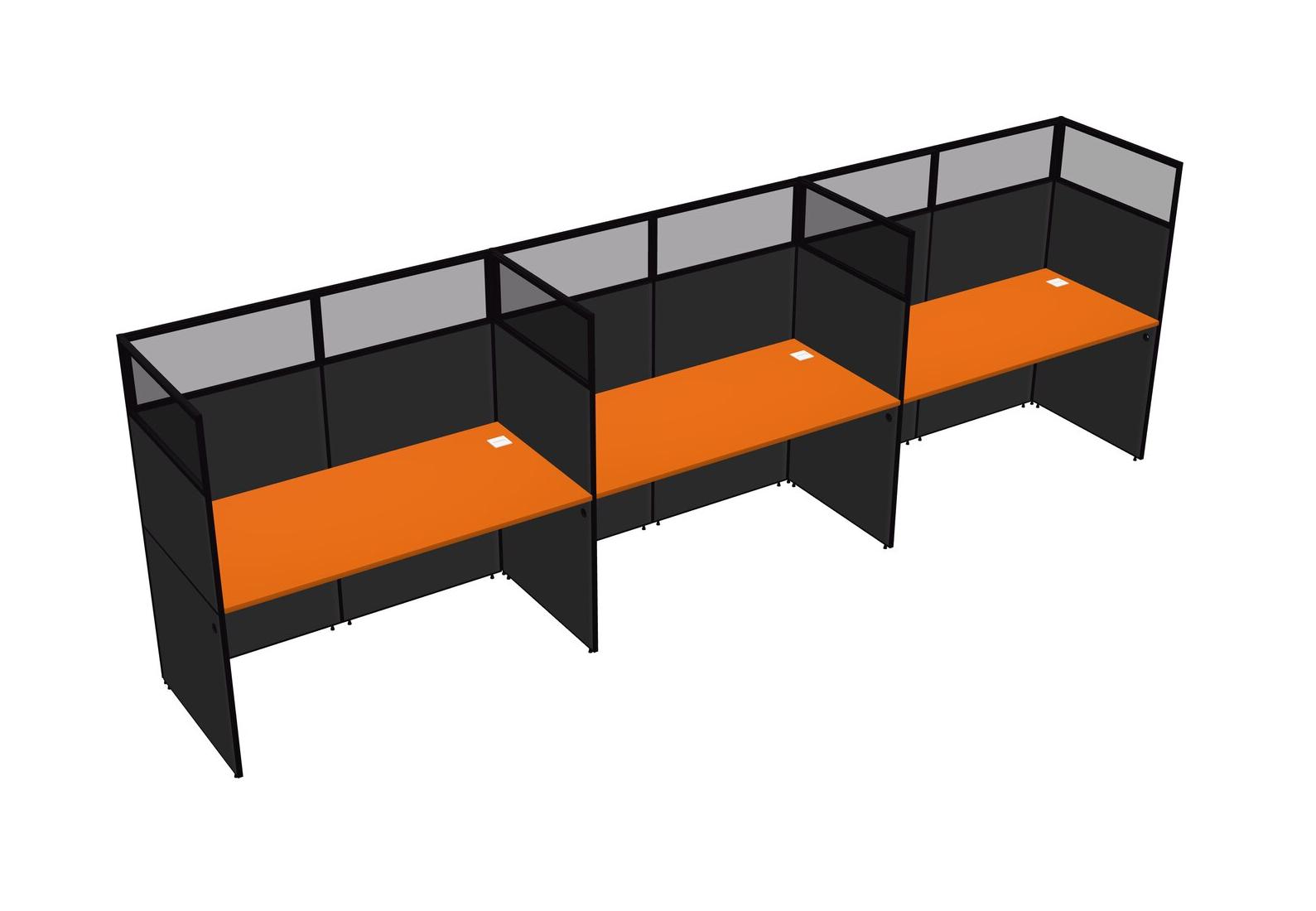 Orange Shared Rectangular Office Cubicle Panel System For 3 Persons